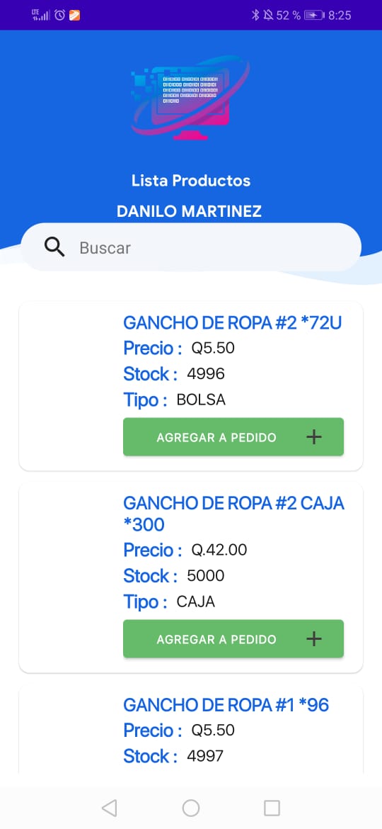 Aplicación toma de pedidos, dirigia a comercios o empresas distribuidores